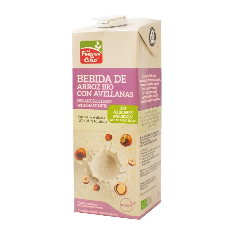 Refrescante bebida de arroz con avellanas elaborada con granos enteros de arroz italiano ecológico y avellanas. Con un sabor dulce natural, es una óptima alternativa a la leche en todos sus empleos. Sin lactosa y sin gluten.