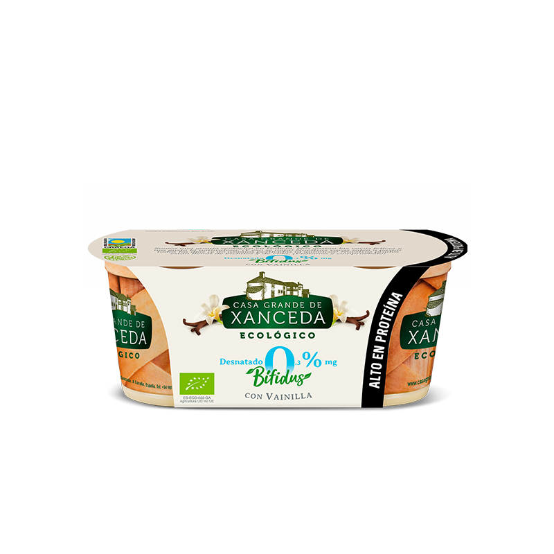 Nuestro desnatado ecológico con vainilla está elaborado con leche de nuestras vacas que salen a pastar todos los días del año a praderas libres de pesticidas, herbicidas o fertilizantes químicos. Además, es alto en proteínas, ¡proteínas 100% naturales de la leche, sin añadidos!