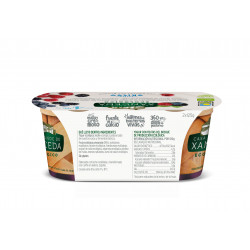 Fruta ecológica preparada (18%): arándanos ecológicos, moras ecológicas, frambuesas ecológicas, azúcar ecológico, algarroba ecológica, pectina de frutas, aromas naturales, zumo de saúco ecológico.