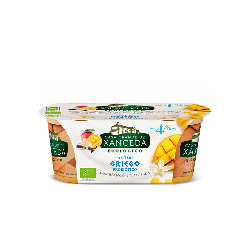 Nuestro griego ecológico con mango y vainilla está elaborado con leche de nuestras vacas que salen a pacer todos los días a praderas libres de pesticidas, herbicidas o fertilizantes químicos.